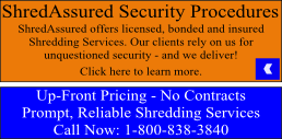 ShredAssured specializes in the secure destruction of confidential data. We destroy paper documents, PC hard drives, microfilm, microfiche, magnetic media, X-Rays, CD's and other forms of proprietary information.